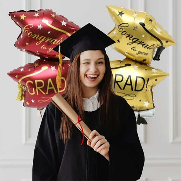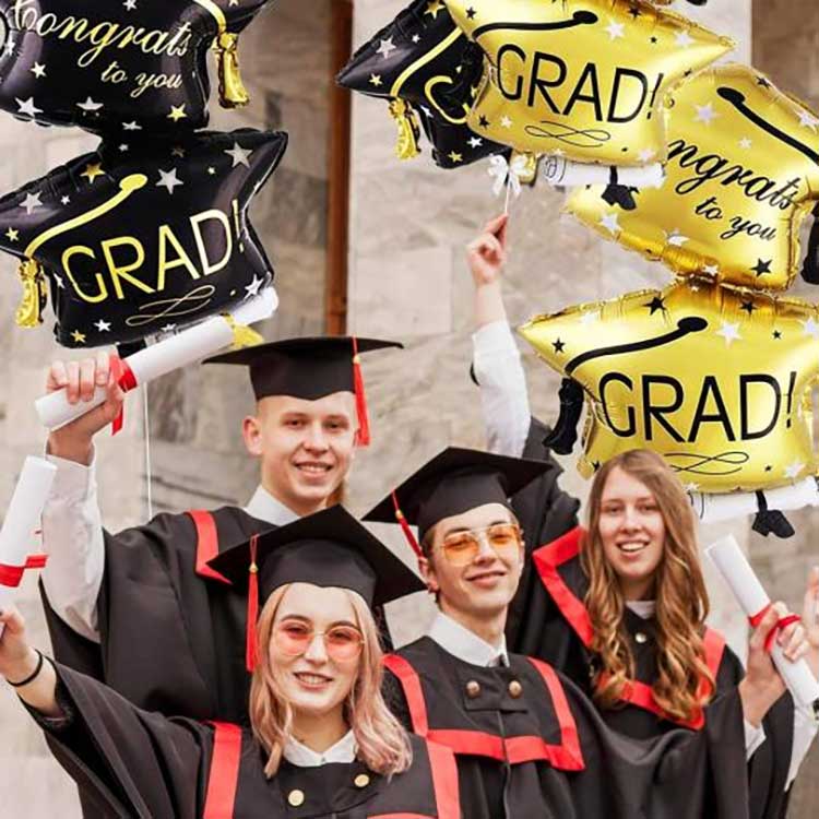 See lõpetamise õhupallikomplekt on saadaval kolmes värvitoonis, must ja kuldne, et lisada teie lõpetamisele veidi glamuuri. Kuldsed lõpumütsiga õhupallid lisavad pidulikku hõngu.