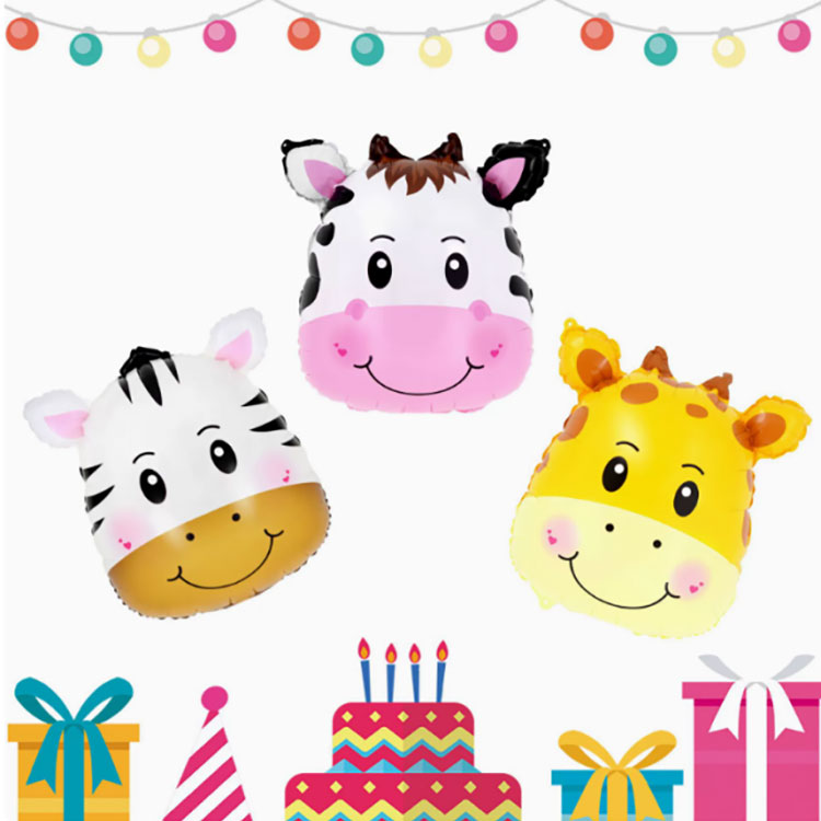 Cartoon Animal Head Foil Balloon kasutab kõrglahutusega printimistehnoloogiat, mille tulemuseks on erksad värvid ja taastatud armas loomakujutis. Need sisaldavad erinevaid loomi, nagu kummipartid, pandad, kaelkirjakud, rebased, elevandid, sebrad ja küülikud, mis vastavad erinevatele teemadele.
