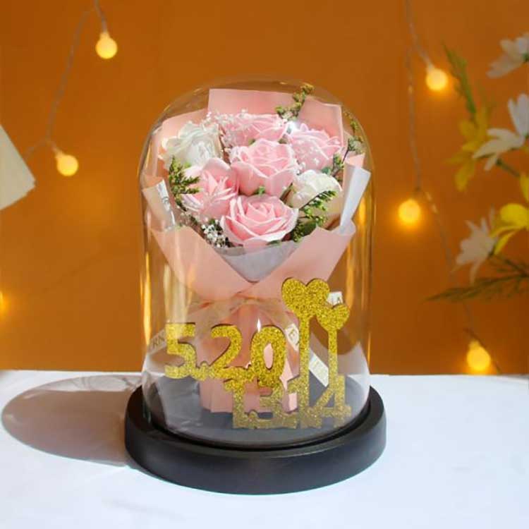 Meie klaasiga kaetud roosiseep säilitab oma erksad värvid ja loomuliku välimuse, samas kui läbipaistvad klaaskatted lisavad neile romantilist ja luksuslikku tunnet. Pakume erinevaid kohandamisvõimalusi: kasutades lasergraveerimist ja UV-trüki tehnoloogiat, graveeritakse klaasile brändi logosid, isikupäraseid sõnumeid või teemamustreid. Värv on vastupidav, detailid selged ja ei tuhmu, mistõttu on see ideaalne valik reklaamreklaamide, pühadekingituste, pulmakingituste või firmasuveniiride jaoks.