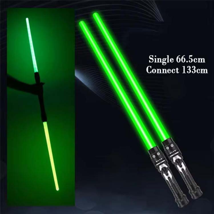 Meie süttib hõõguv lasermõõk, millel on hõlpsasti haarduv disain hõõguv käepide. Sellel on ka LED -valgust vilkuv režiim. Värv ja heli on liikumistundlikud.