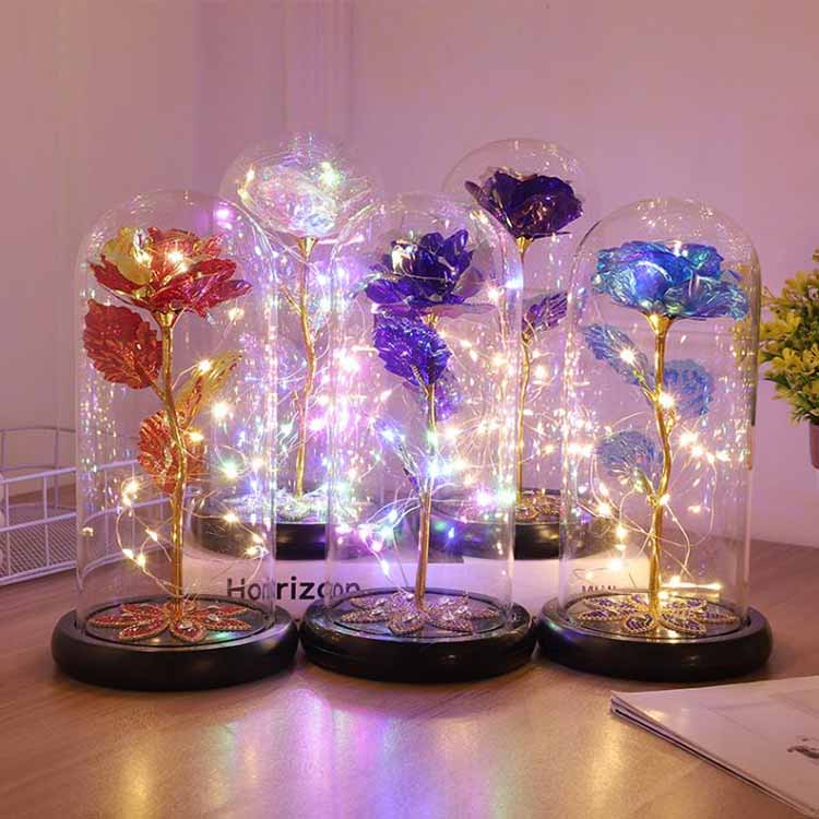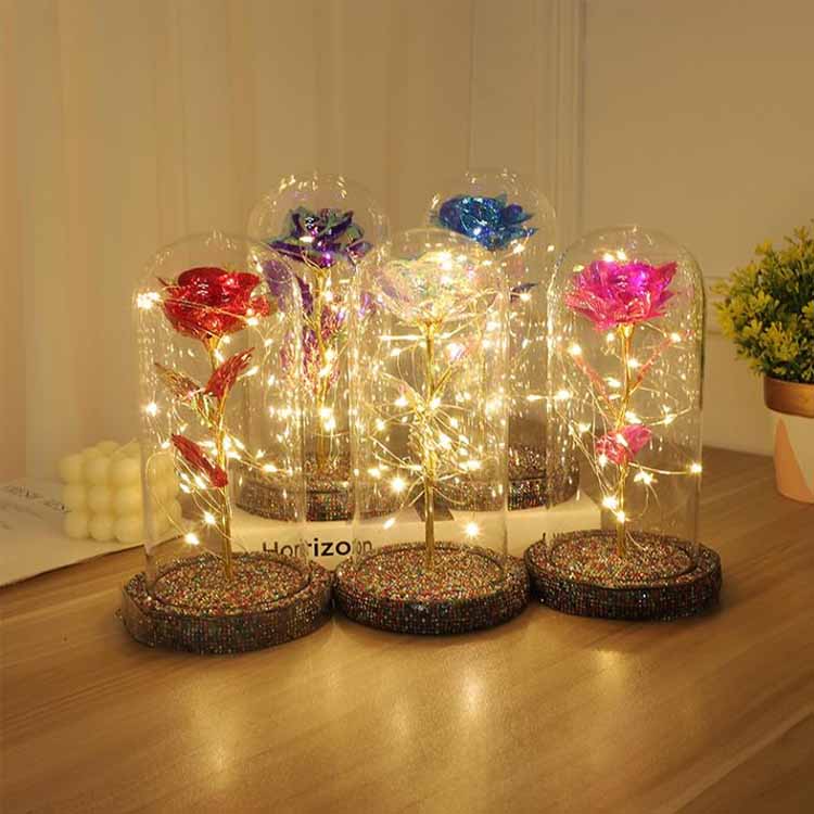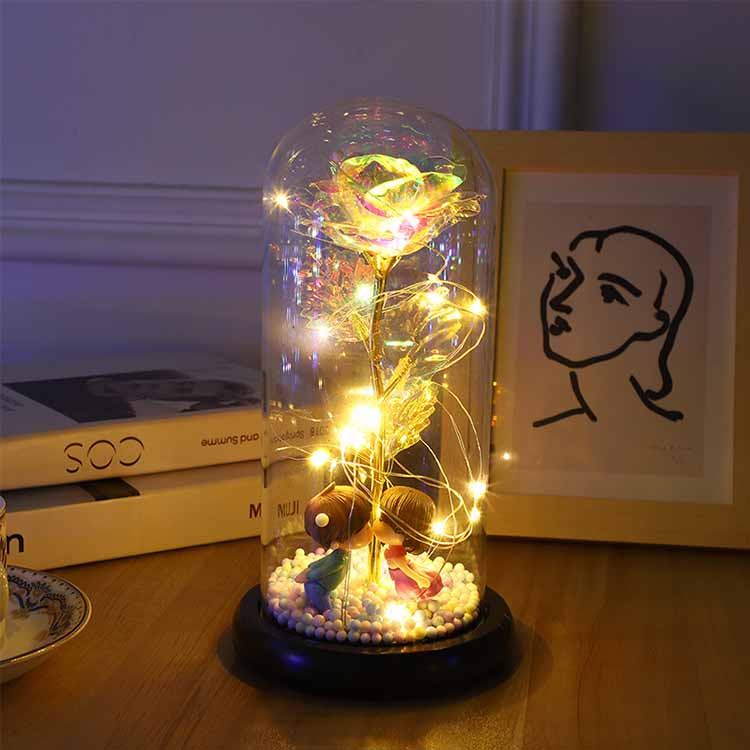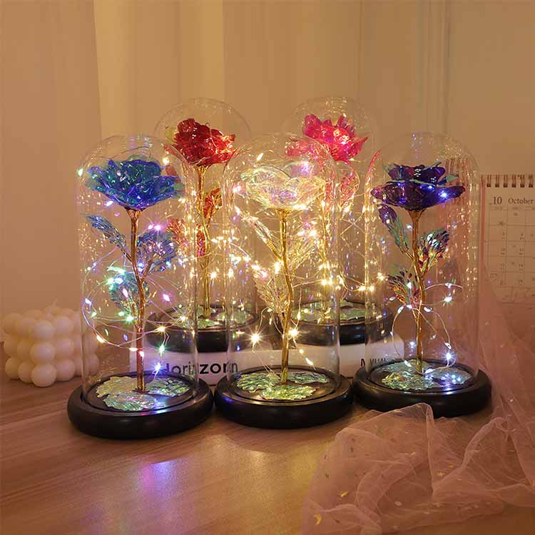 LED 24K klaas tõusis kaitseümbrise sees, meil on palju nukke ja mänguasju. Kliendid saavad valida oma lemmiknukud ja neile meeldivate lillede värvi. Saame neid kohandada vastavalt teie vajadustele.