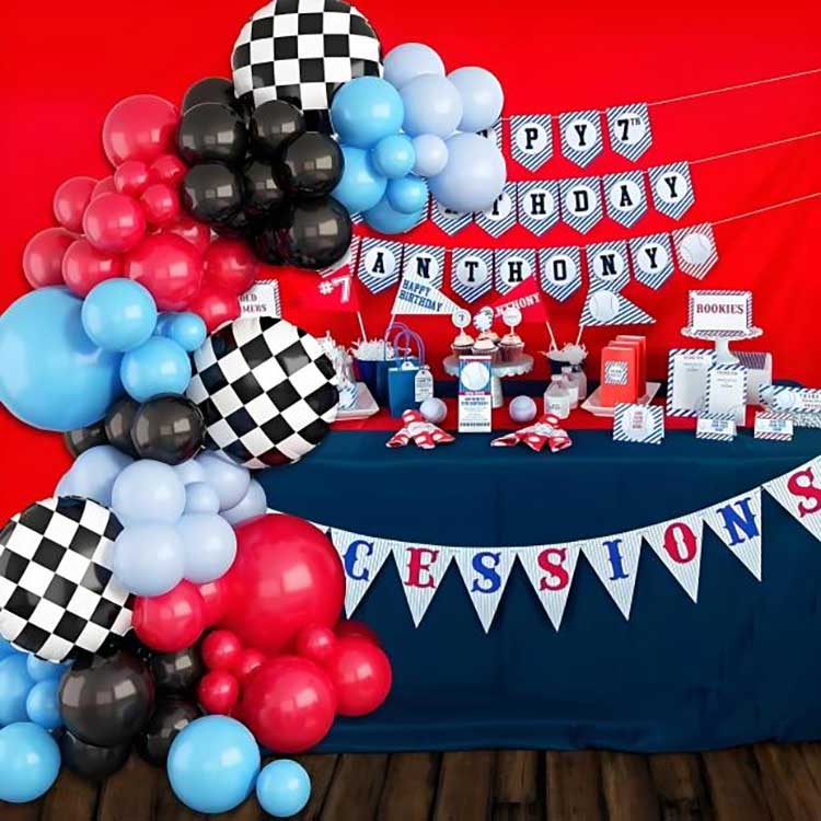Võidusõiduteemaline õhupallikaare kaunistuskomplekt on dekoratiivne lahendus, mis on spetsiaalselt loodud võidusõiduteemalisteks pidudeks, üritusteks ja sünnipäevadeks. See toode on keskendunud autospordi teemale. Lisades mustad, hõbedased, sinised ja punased lateksist õhupalle, samuti autode ja võidusõidutarvikute mudeleid, saavutab see dekoratsioonina kaarekujulise lõpptulemuse, luues ürituse toimumispaika kirgliku ja rõõmsa õhkkonna.